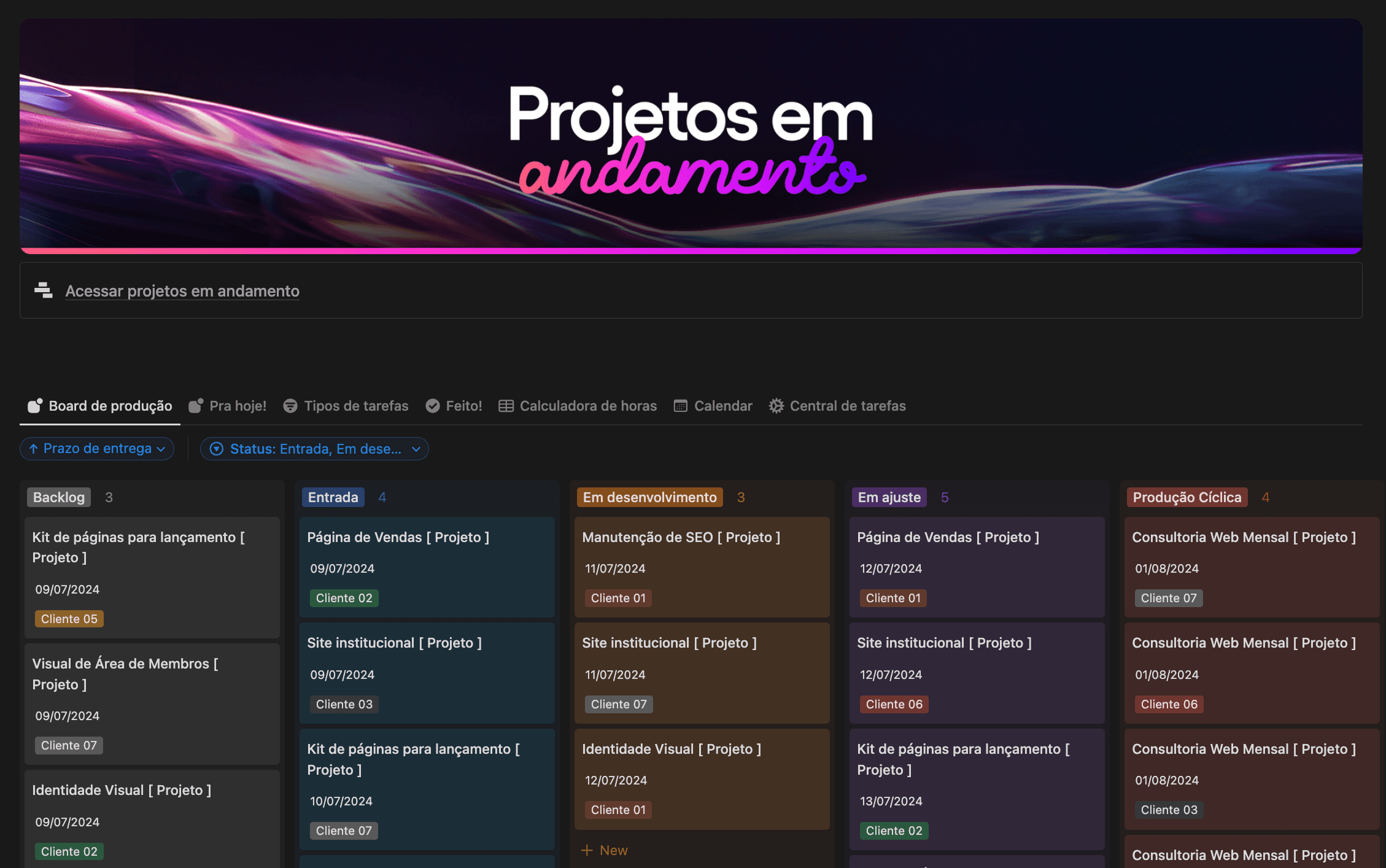Gerencie clientes, projetos e prazos em um só lugar, sem bagunça.